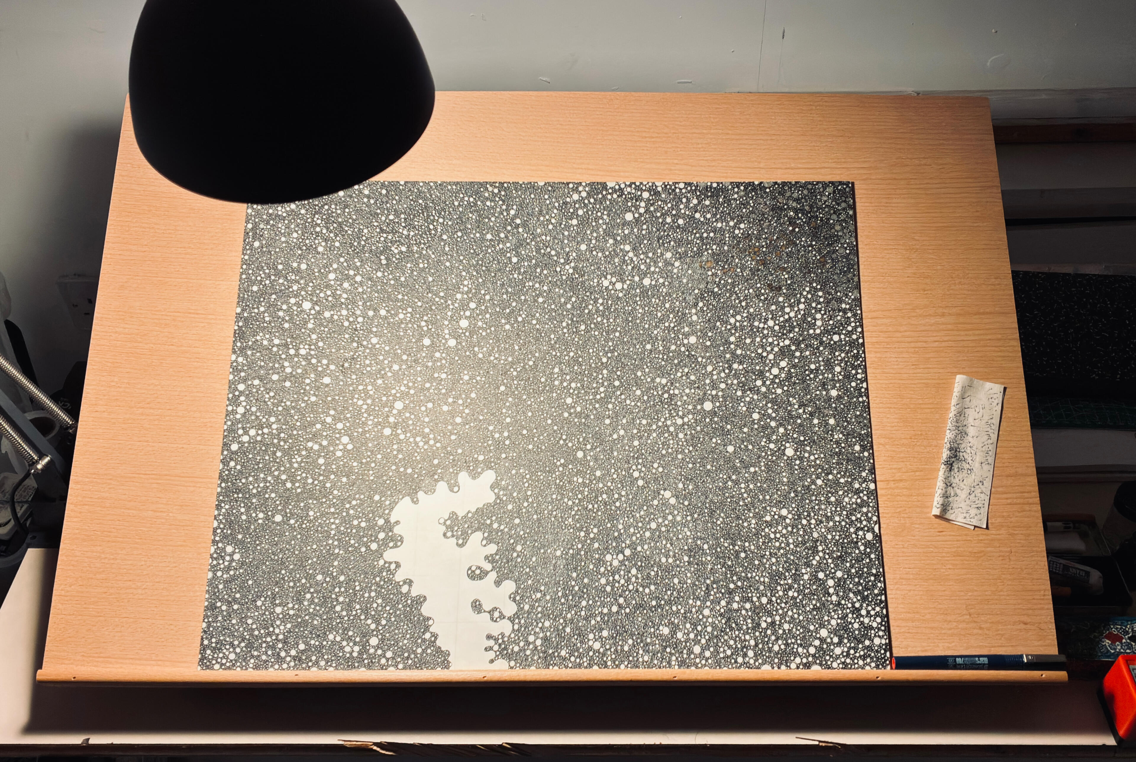 Process-based, non-representational work built through repetition, duration, and restraint.Forms emerge through sustained attention and the patient accumulation of the mark, allowing structure to arise without predetermined design.